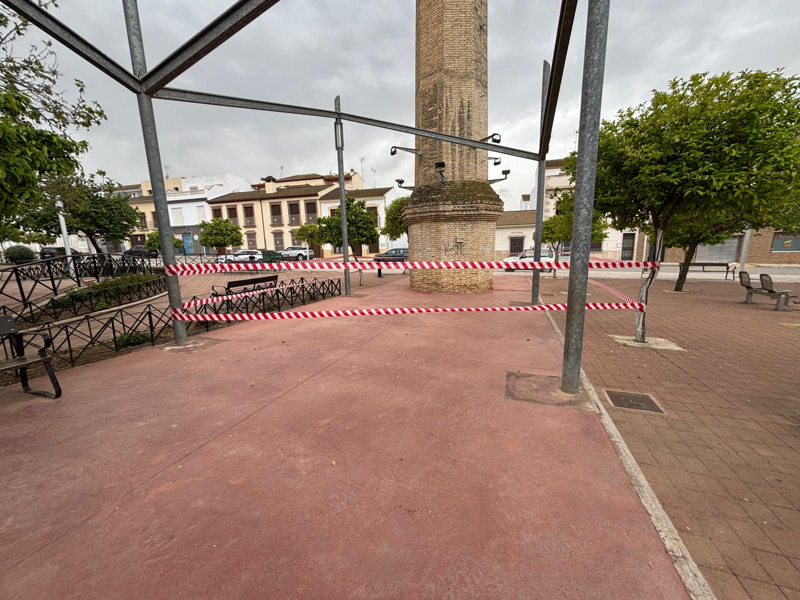 Operarios del Ayuntamiento de Herrera han procedido al perimetrado de una zona de la Plaza Alcalde Manuel Vázquez con el objetivo de garantizar la seguridad de los vecinos y preservar el entorno.