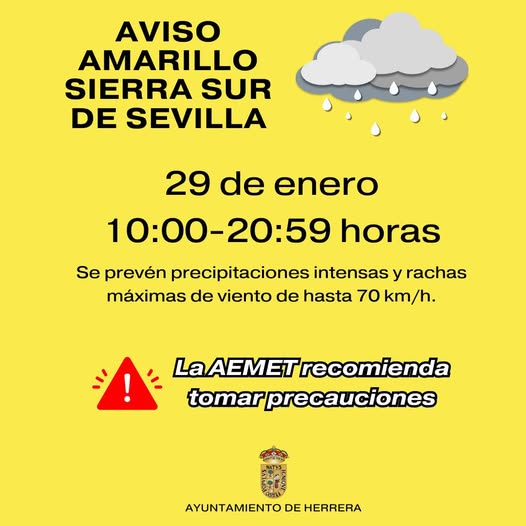 Desde el Ayuntamiento de Herrera se recomienda a la ciudadanía evitar desplazamientos innecesarios en las horas más críticas del episodio y seguir las indicaciones de las autoridades.