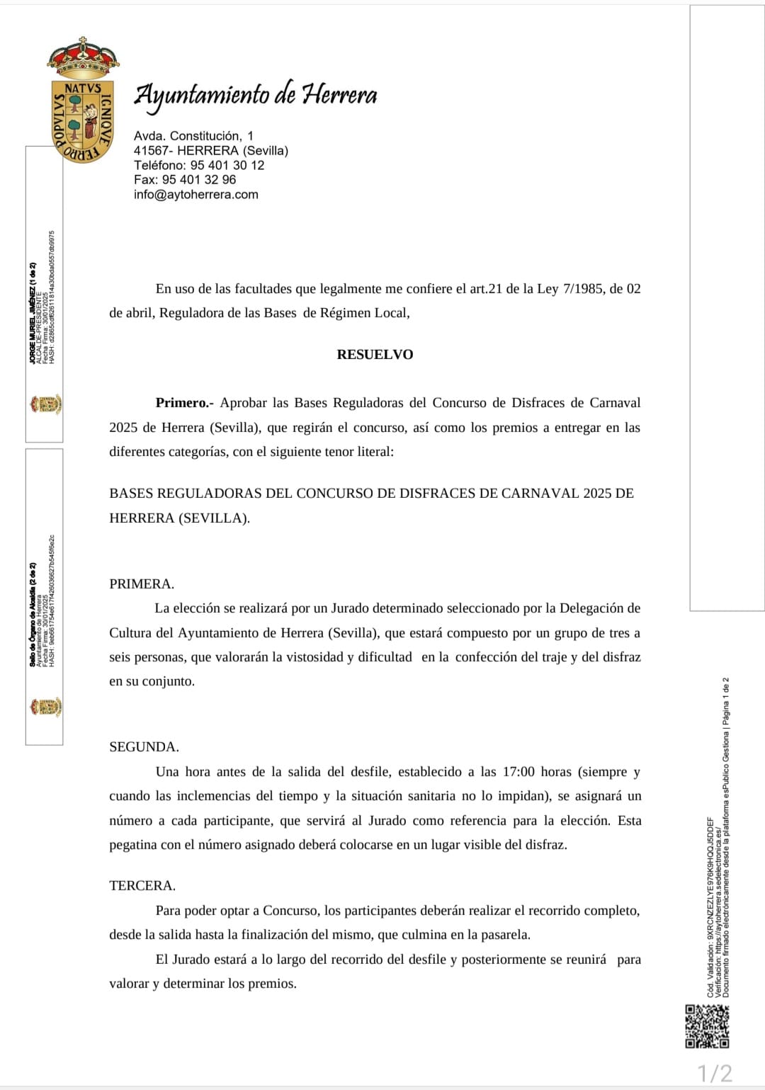 BASES REGULADORAS DEL CONCURSO DE DISFRACES DE CARNAVAL 2025 DE HERRERA