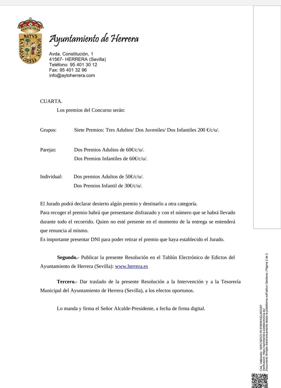 Como novedad, este año, el Ayuntamiento de Herrera ha aumentado el importe de los premios, ya que ha añadido una distinción más en los grupos de la categoría de adultos.