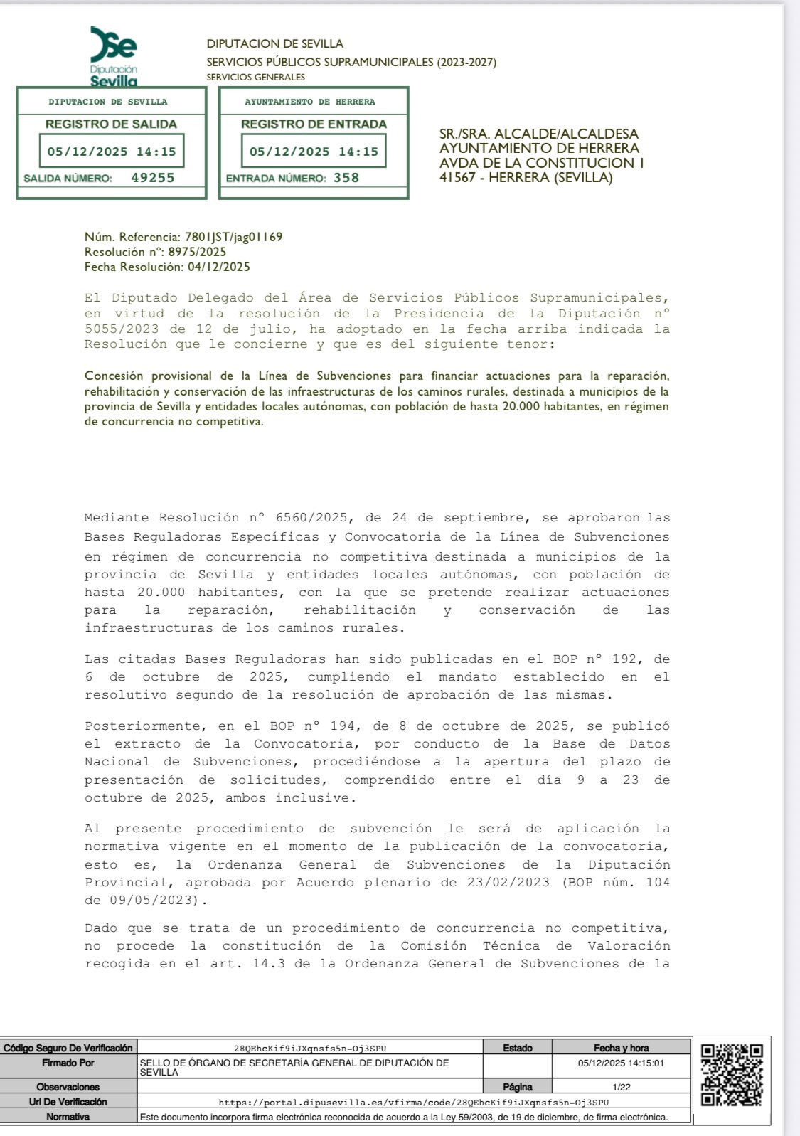 El Ayuntamiento de Herrera sigue avanzando en la mejora y mantenimiento de los caminos rurales del municipio, consolidando un plan coordinado y progresivo que combina fondos municipales, provinciales y autonómicos para garantizar vías rurales en buen estado, fundamentales para la actividad agrícola y la vida diaria de los vecinos. Estas actuaciones son financiadas mediante diferentes líneas.