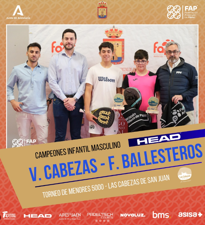 El jugador herrereño de pádel, Ventura Cabezas Valdez, conquistó hace dos semanas junto a su compañero Diego Sánchez el IV Torneo Menores 5000 Ciudad de Vélez-Málaga. Además, con su compañero Francisco Ballesteros, el pasado fin de semana se proclamó campeón del Torneo de Menores 5.000 de Las Cabezas de San Juan.