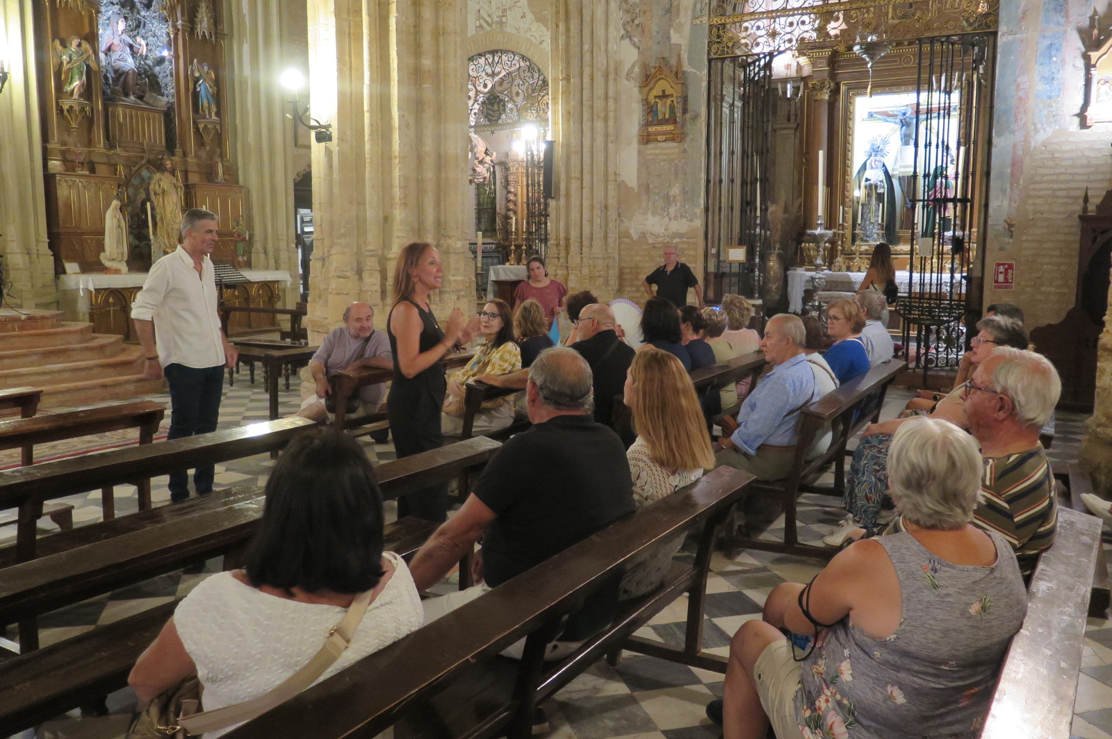 Tras un tiempo para degustar la gastronomía utrerana y recorrer libremente las calles de esta ciudad, la jornada culminó con una experiencia inolvidable: la visita nocturna a la Iglesia de Santiago el Mayor, joya del gótico andaluz, y el recorrido en el propio templo, cuya grandeza arquitectónica y riqueza artística impresionó a todos los presentes.