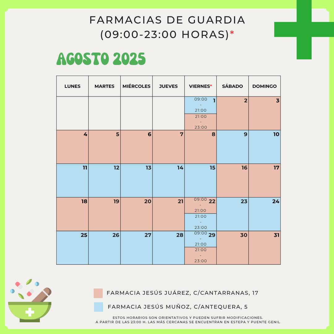 FARMACIAS DE GUARDIA (AGOSTO 2025)