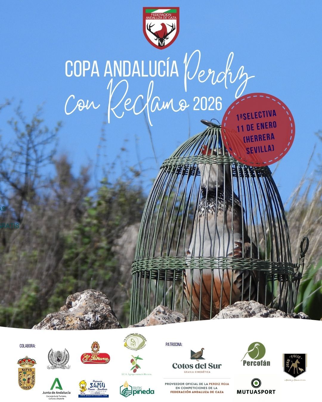 El próximo domingo, 11 de enero, Herrera será sede de la 1ª Selectiva de la Copa de Andalucía de Perdiz con Reclamo, una de las competiciones más destacadas del calendario cinegético andaluz.