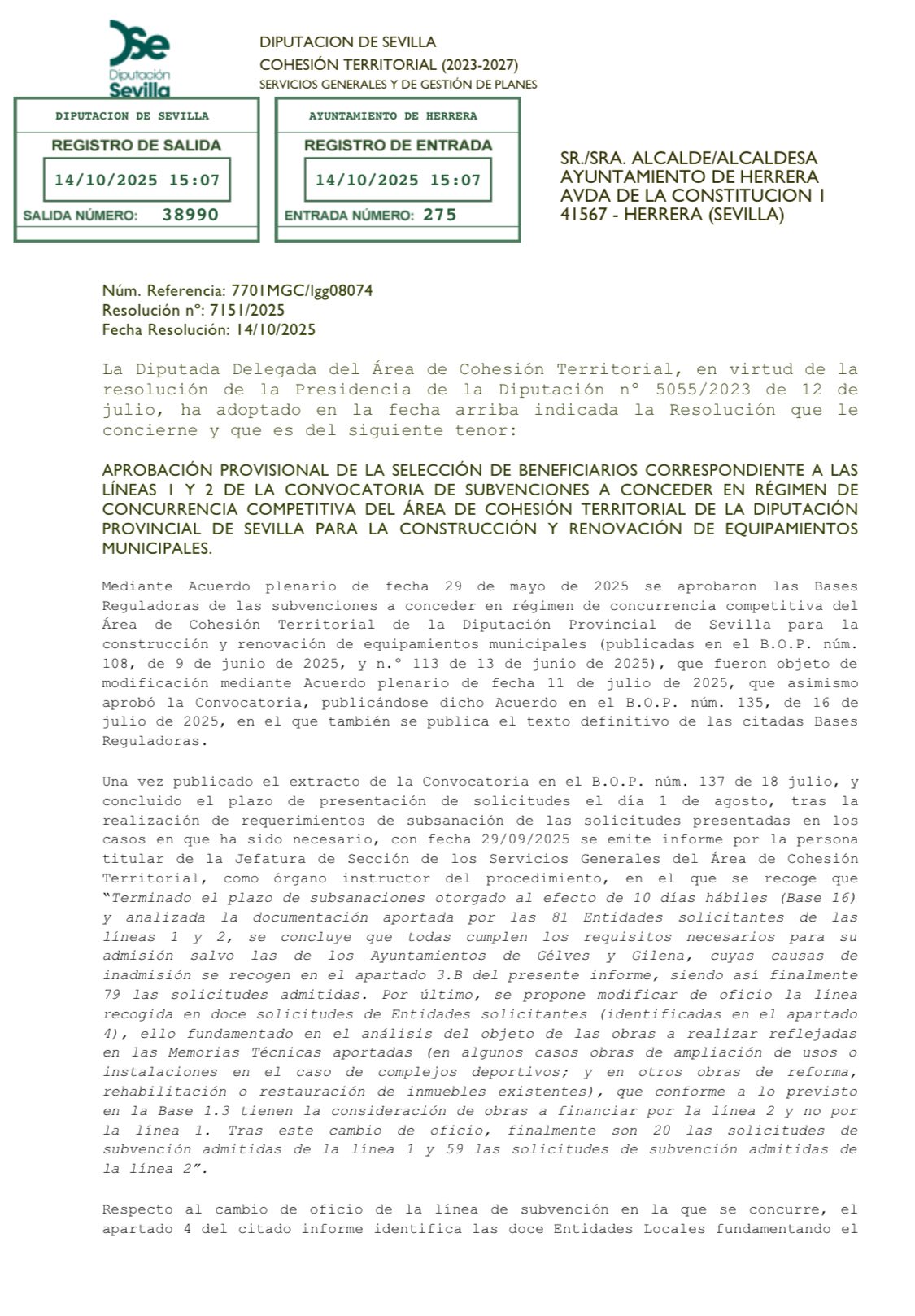 Esta actuación tendrá un gran impacto social, generará empleo local y mejorará la calidad de vida de nuestros mayores, consolidando a Herrera como un referente en la atención y el cuidado de las personas mayores.