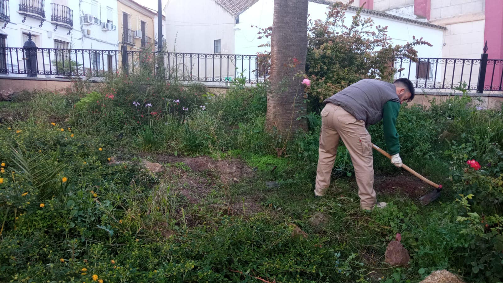 Los jóvenes que participan en el PEF "Gestión Medioambiental" están colaborando actualmente en adecentar e incrementar la superficie verde de parques y jardines en la localidad.