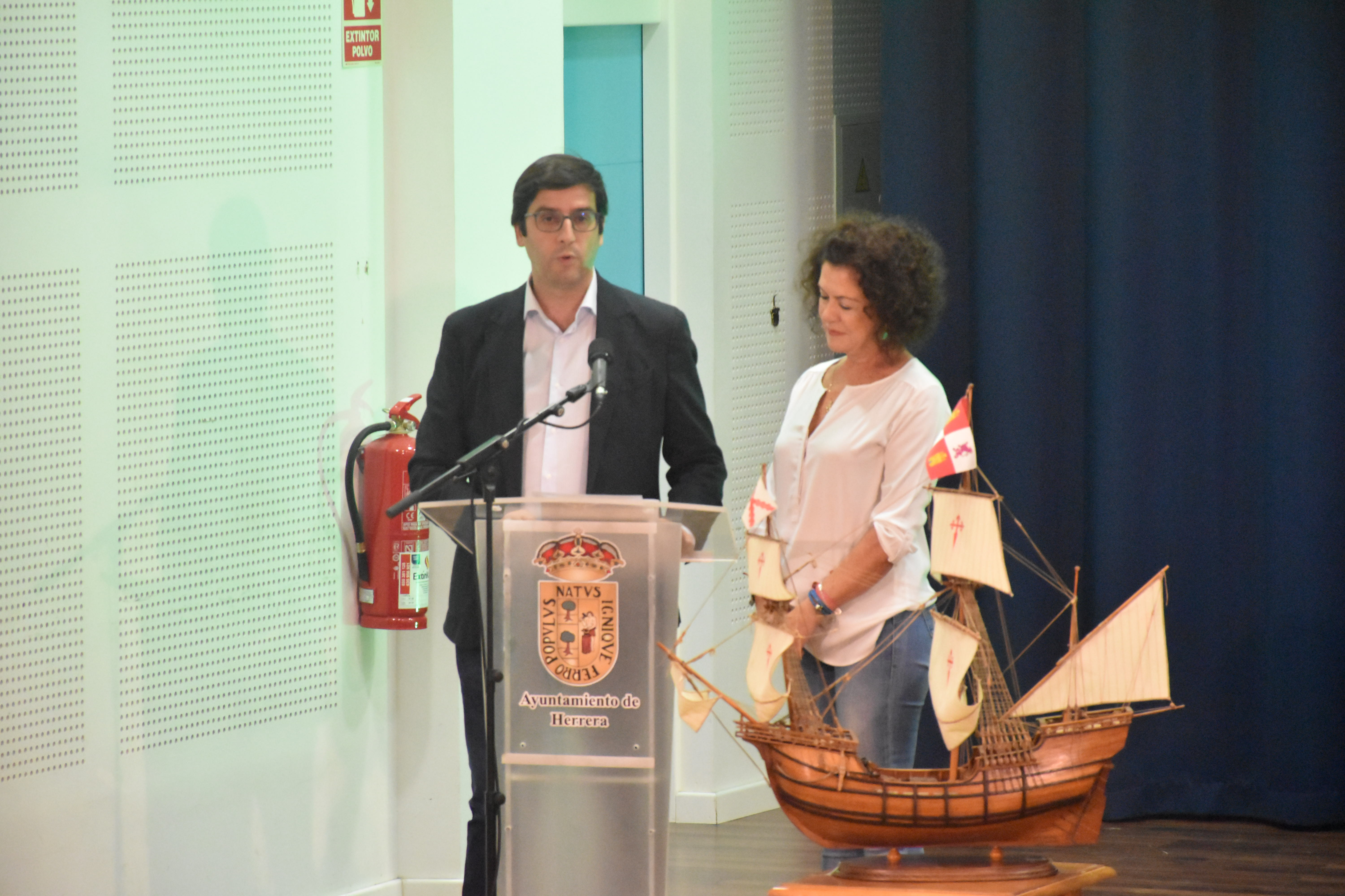 Alejandro Suárez, teniente de alcalde del Ayuntamiento de Herrera, y Ana María Canela, concejal delegada de Educación, inauguraron el ciclo y agradecieron a los presentes su asistencia, destacando la importancia de este tipo de actividades para la cultura, la educación y el fomento de la lectura. Además, invitaron a subir al atril a Luciano Benjumea, modelista naval herrereño, que explicó las características de una de sus obras expuesta en el escenario.