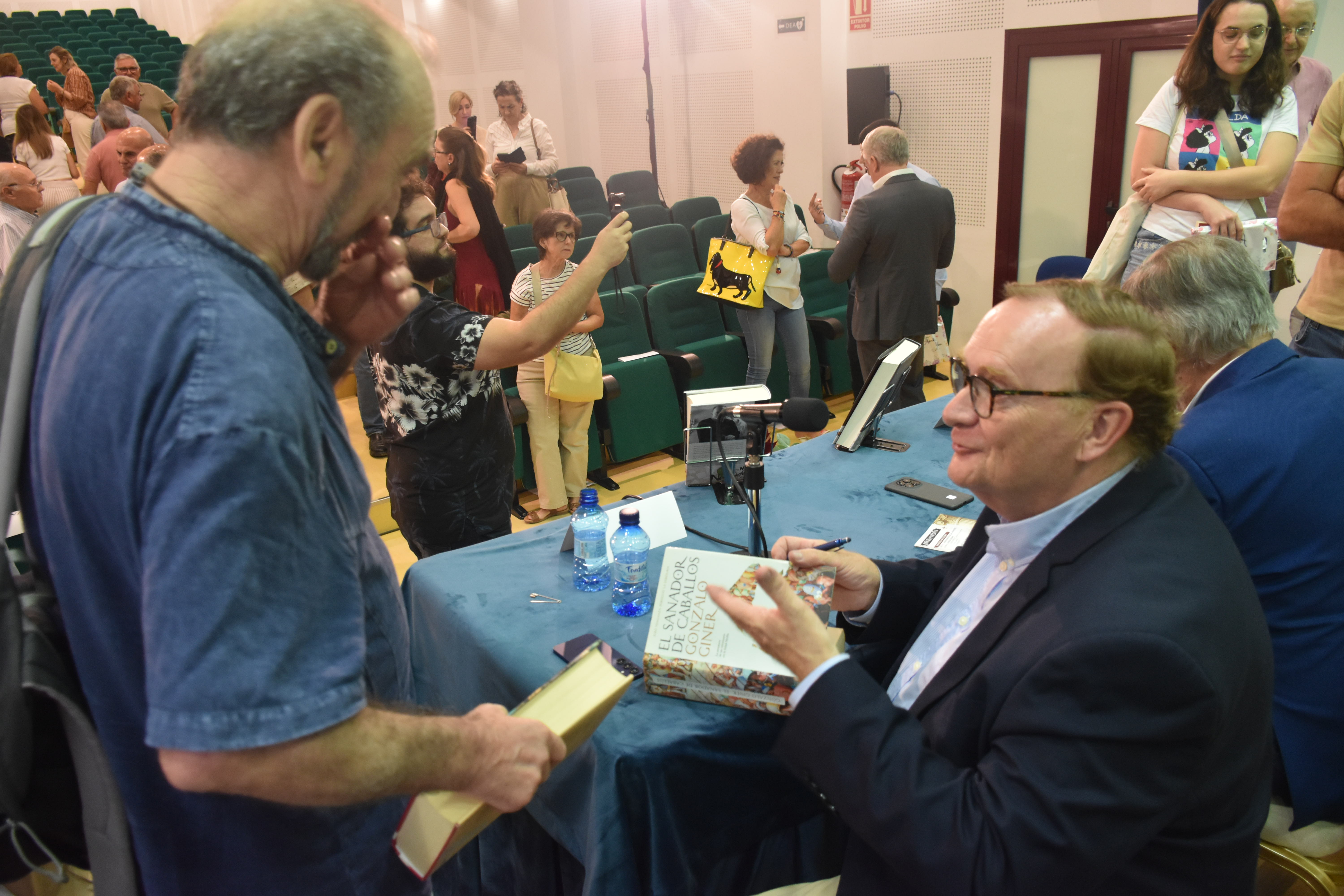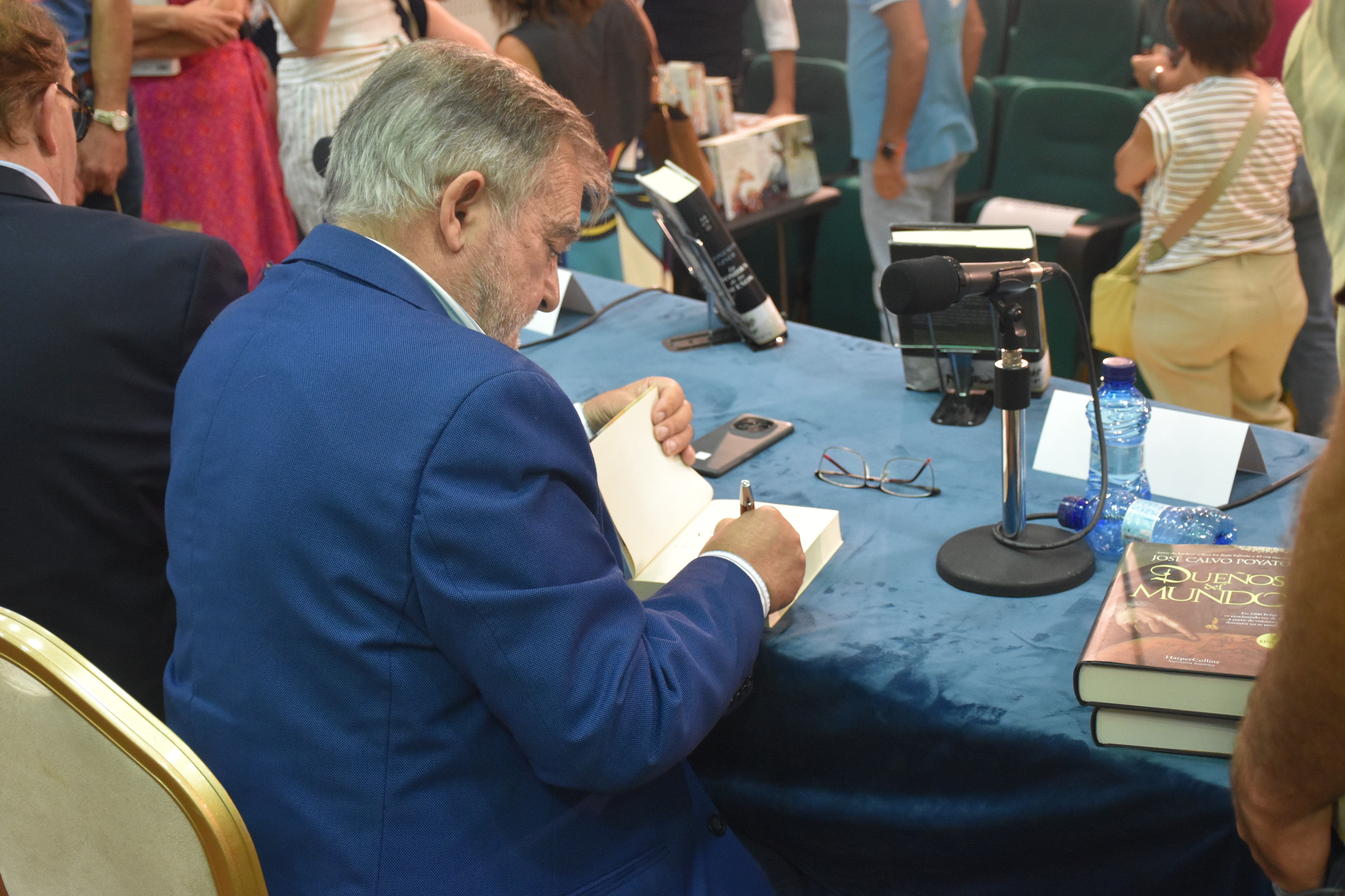 Por su parte, José Calvo Poyato ofreció una ponencia sobre el momento más brillante de España, etapa donde se ambienta su nueva novela Dueños del mundo. El novelista egabrense compartió con los presentes las vicisitudes del Reino de Portugal y puso en valor la etapa en que España alcanzó su máxima extensión y poder: “no se ponía el sol”. Además, reivindicó a Felipe II mostrando un retrato menos siniestro del monarca, frente a ciertas visiones negativas que han perdurado.