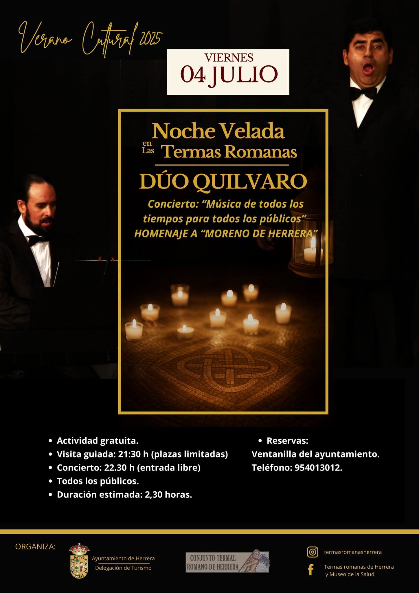 Por su parte, el 4 de julio, el Dúo Quilvaro nos ofrecerá el concierto “Música de todos los tiempos para todos los públicos” en homenaje al músico Moreno de Herrera.