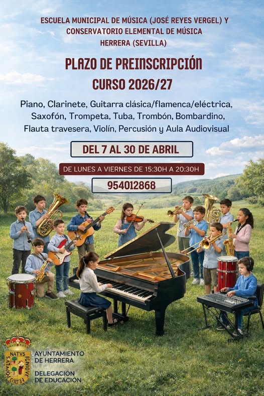 El próximo martes, 7 de abril, comienza el plazo de preinscripción para la Escuela Municipal y Conservatorio Elemental de Música de Herrera. El periodo finalizará el jueves, 30 de abril.