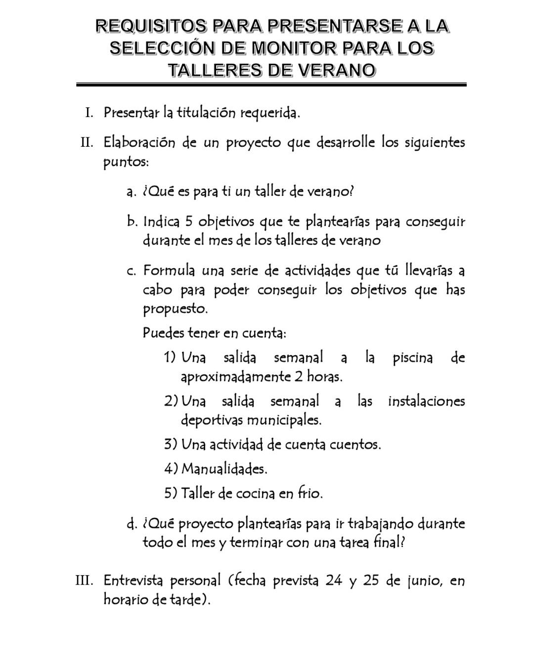SELECCIÓN DE MONITORES PARA LOS TALLERES DE VERANO