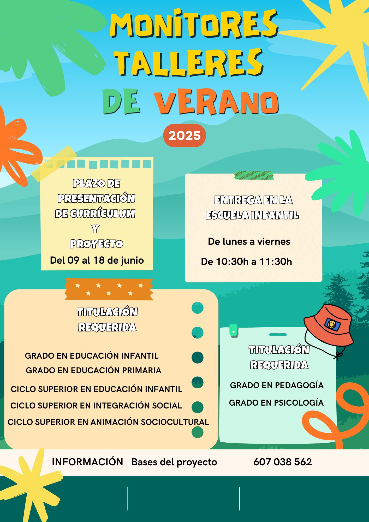 El Ayuntamiento de Herrera abre el plazo de presentación de currículum y proyecto para optar a las plazas de monitores de talleres de verano. El periodo para la inscripción y entrega de documentación será del 9 al 18 de junio en la Escuela Infantil “El Jardín de los Pequeñines” en horario de 10:30-11:30 horas de lunes a viernes.