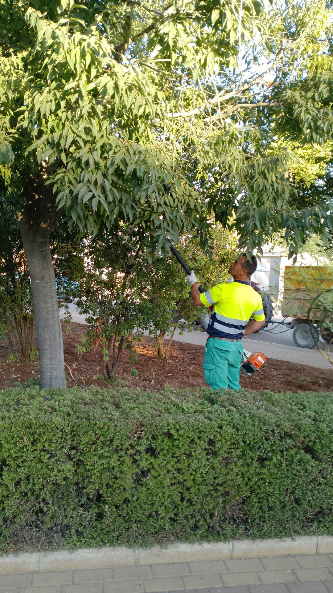 Además, continúan los trabajos de mantenimiento de jardinería como la poda, limpieza y adecentamiento de parques y jardines en distintos puntos de la localidad.