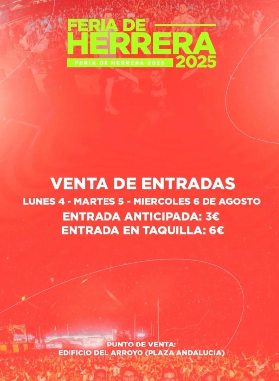 El Ayuntamiento de Herrera informa que las invitaciones para la XXXVI Noche Flamenca “Pedro el de la Timotea” y las entradas para la Caseta de la Juventud estarán a la venta a partir del lunes, 4 de agosto, hasta el miércoles, 6 de agosto, en horario de 09:00-13:00 horas en las dependencias municipales del Arroyo.