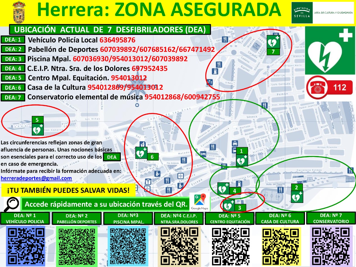 Tras el apoyo incondicional de la Diputación Provincial de Sevilla para la ampliación y dotación de 4 nuevos dispositivos (DEA) Desfibrilador Externo Automatizado, el municipio de Herrera cuenta ahora con 7 desfibriladores ubicados en distintas zonas de la localidad.