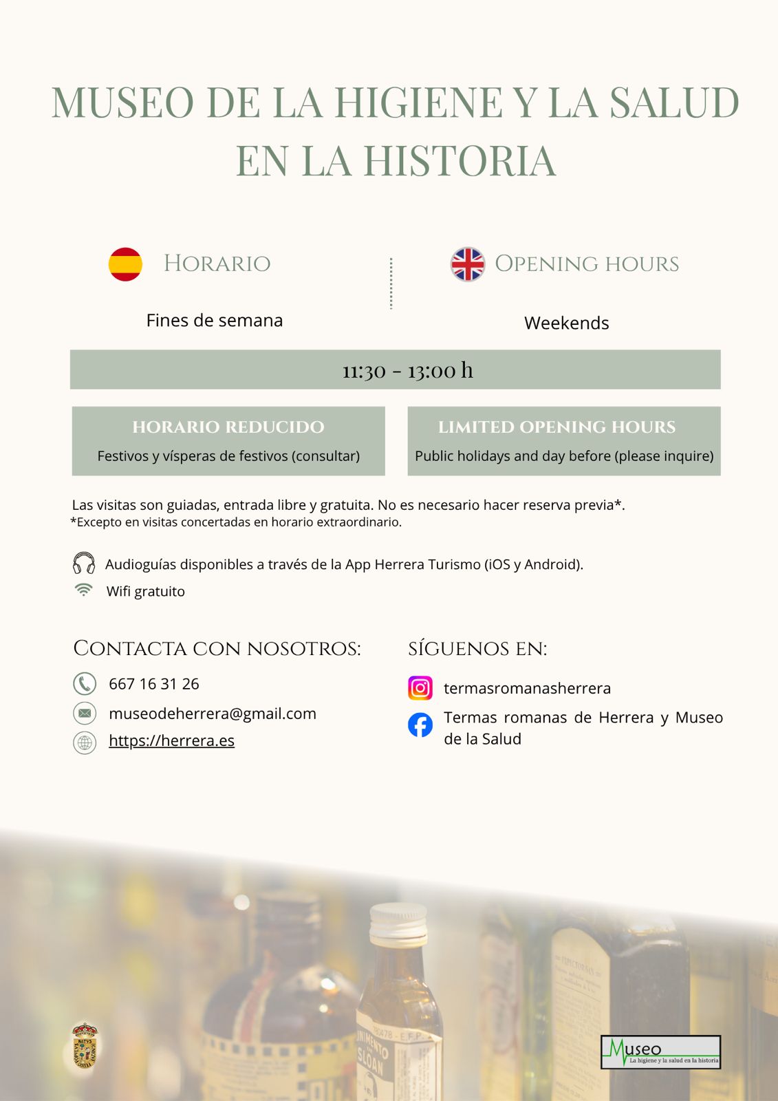 Con motivo de la Semana Santa, el Conjunto Termal Romano de Herrera y el Museo de la Higiene y la Salud en la Historia modifican sus horarios de apertura.