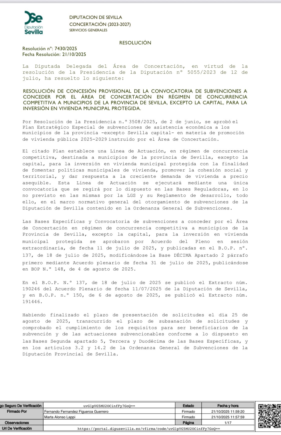 Con estas 15 nuevas viviendas, Herrera alcanzará un total de 34 viviendas protegidas promovidas directamente desde el ámbito municipal. Esto refuerza la política de vivienda pública del Ayuntamiento, diseñada de forma seria, planificada y orientada a las familias.