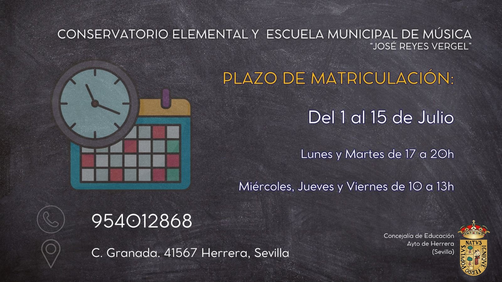 Hoy, 1 de julio, comienza el plazo de inscripción para la Escuela Municipal de Música "José Reyes Vergel" y el Conservatorio Elemental de Música. El periodo de matriculación finalizará el 15 de julio.