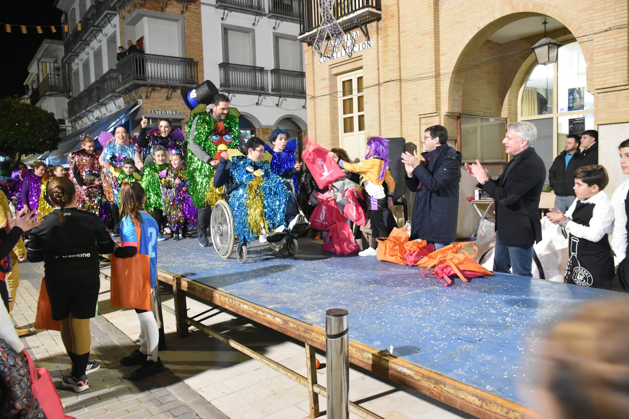 En la avenida de la Constitución, los más pequeños obtuvieron un regalo por parte del Ayuntamiento de Herrera en reconocimiento a su participación. En este punto, los asistentes también pudieron disfrutar de distintas coreografías realizadas por parejas y grupos que arrancaron los aplausos y las risas de los presentes.
