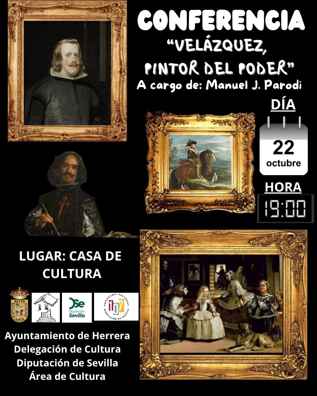 El próximo miércoles, 22 de octubre, a las 19:00 horas tendrá lugar la conferencia “Diego Velázquez, pintor del poder” en la Casa de Cultura “Julián Canela”.