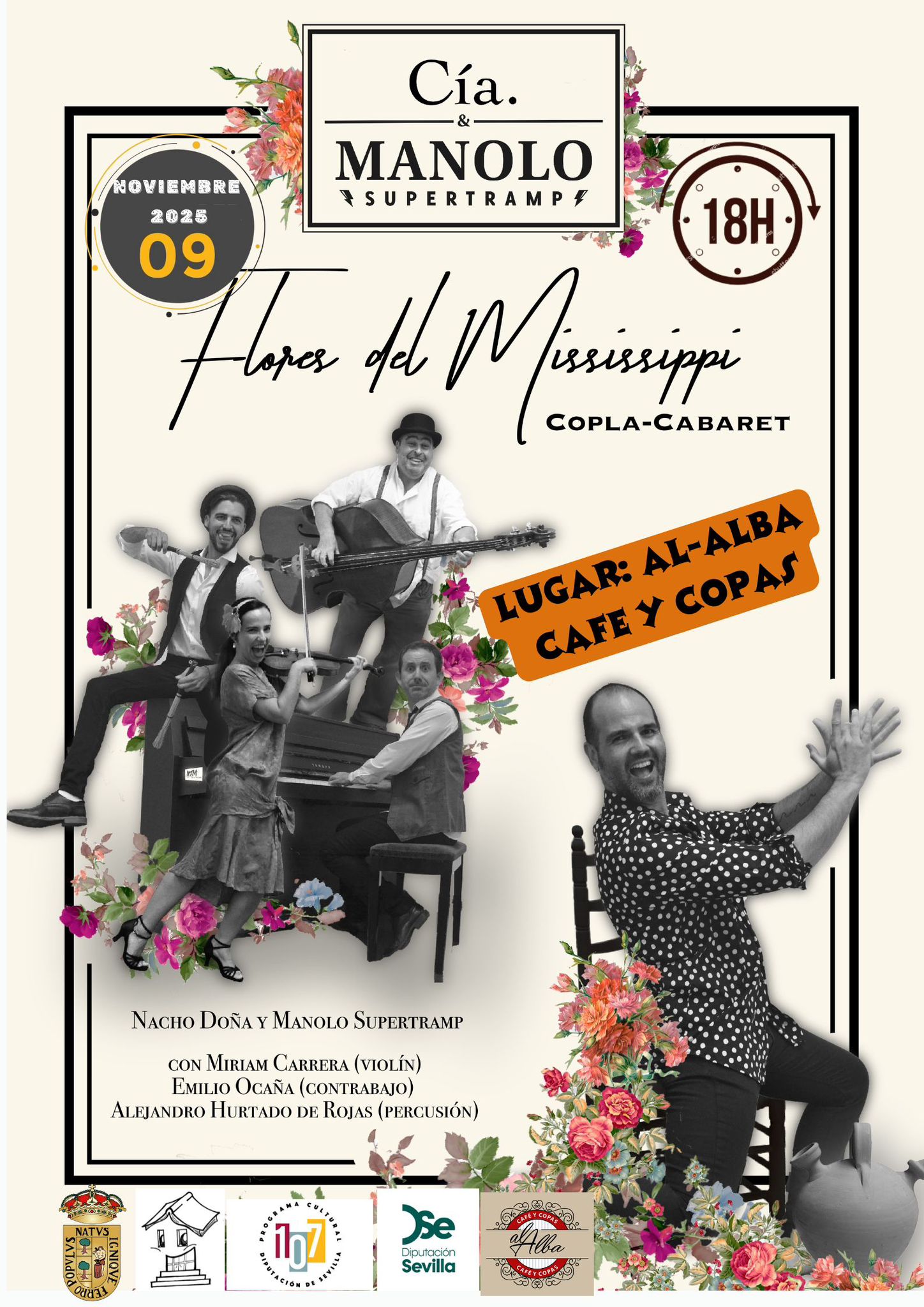 El próximo domingo, 9 de noviembre, la Compañía Manolo Supertramp ofrecerá a partir de las 18:00 horas en Al-Alba Café y Copas el espectáculo “Flores del Mississippi” (Copla-Cabaret), una propuesta singular que combina música, humor, teatralidad y emoción.