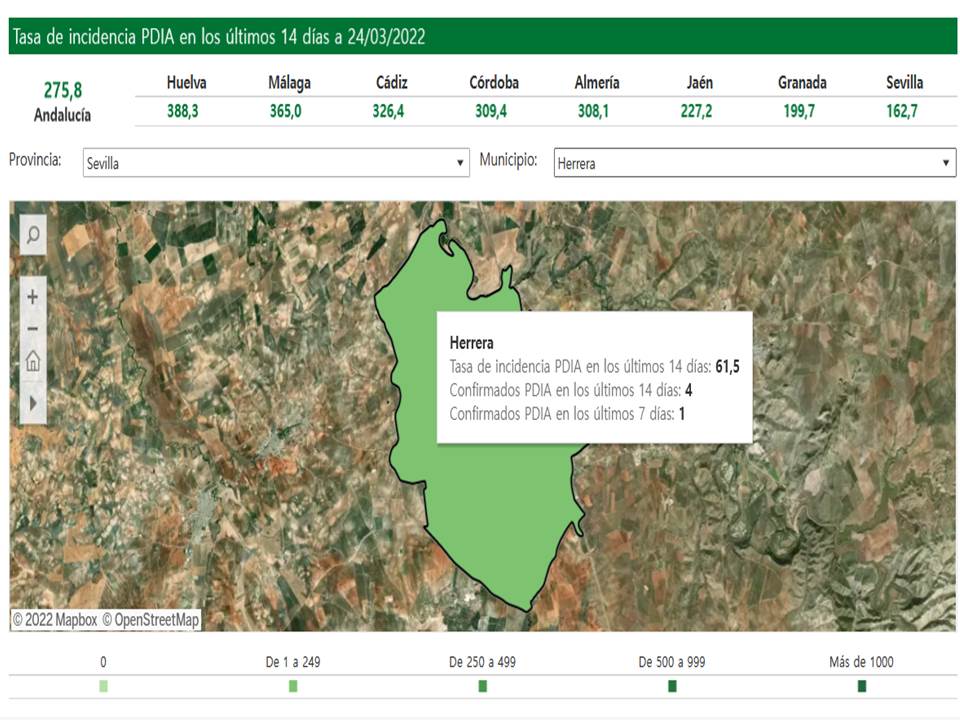 Los datos de la Consejería de Salud y Familias de la Junta de Andalucía, reflejan que hoy, tenemos un total de 4 casos activos de covid-19 en Herrera.