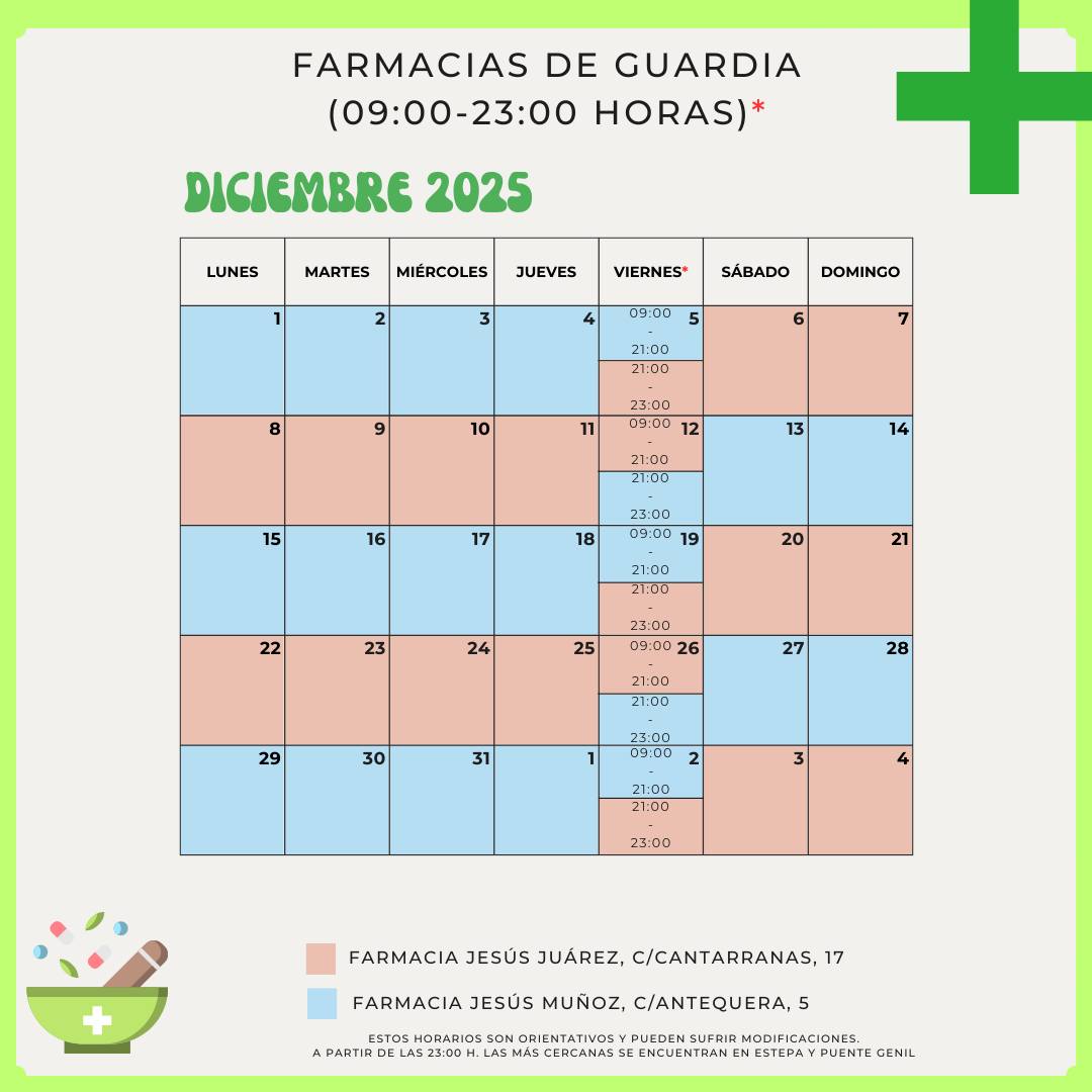 FARMACIAS DE GUARDIA (DICIEMBRE 2025)