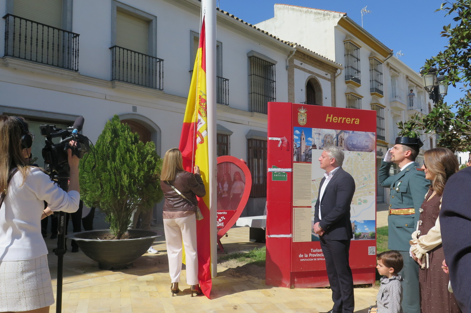 La jornada comenzó a mediodía con el izado de la bandera de Andalucía en la Plaza Andalucía, realizado por Ana María Canela, concejal de Educación, acompañado por las notas de la AC Amigos de la Música de Herrera. A continuación, se llevó a cabo la inauguración del nuevo azulejo decorativo ubicado en la Plaza Modesto Barrera.