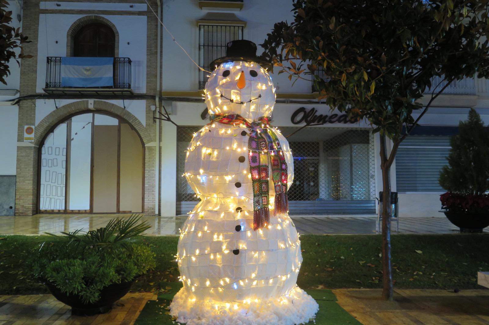 El Ayuntamiento quiso agradecer la implicación de colectivos locales, asociaciones y ciudadanía, subrayando la importancia de preservar nuestras tradiciones y de iniciar juntos unas fiestas tan significativas. En este sentido, merecen especial mención las mujeres del Centro de Promoción de la Mujer “María Auxiliadora”, quienes, con dedicación durante meses, preparan cada detalle para llenar de ilusión a los más pequeños. Este año, junto con el personal de Servicios del Ayuntamiento (encargado de elaborar el armazón metálico), han creado un gigantesco muñeco de nieve recubierto de rosas blancas de ganchillo crochet, confeccionadas una a una por estas formidables mujeres.