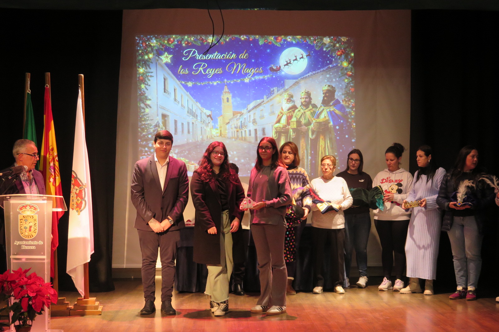 En la tarde del pasado martes tuvo lugar en la Casa de Cultura "Julián Canela", el acto de presentación de las personas que encarnarán a Sus Majestades los Reyes Magos en la próxima Cabalgata de Herrera, así como a quienes participarán en la Carroza de la Estrella de la Ilusión y a los niños que representarán a San José y a la Virgen María. Por motivos personales, el martes no pudo asistir al acto la persona que encarnará a Papá Noel, pero sí lo hizo en la tarde de ayer.