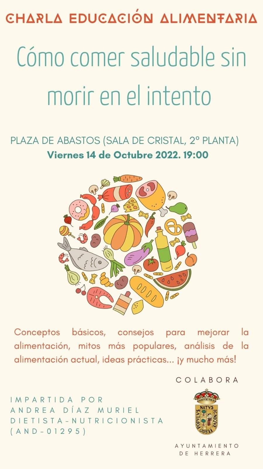 "Cómo comer saludable sin morir en el intento", por Andrea Díaz Muriel, próximo viernes 14 de octubre en la sala de cristales de la plaza de abastos.