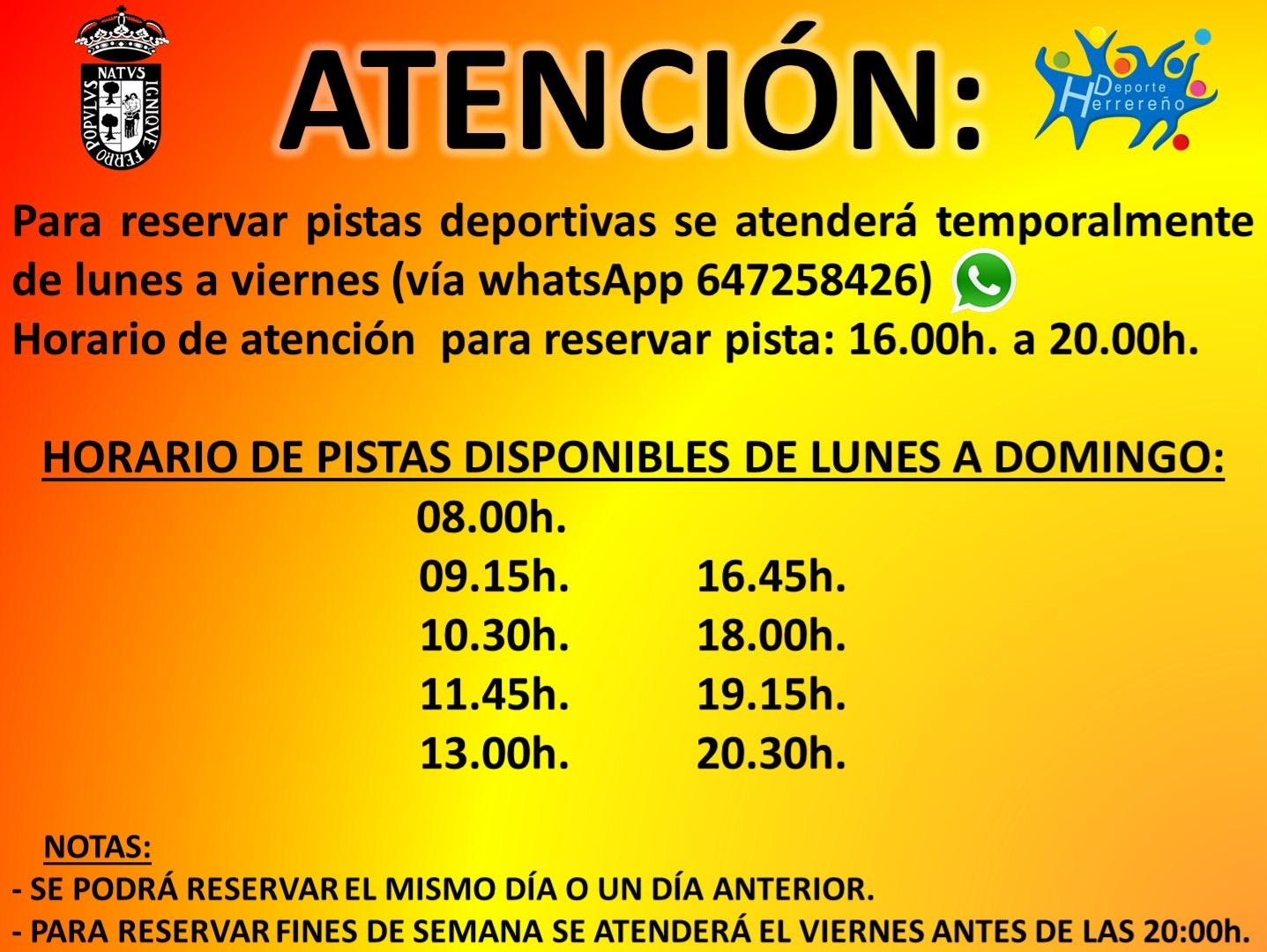 Horario de atención para reservar pista: 16:00-20:00 horas.