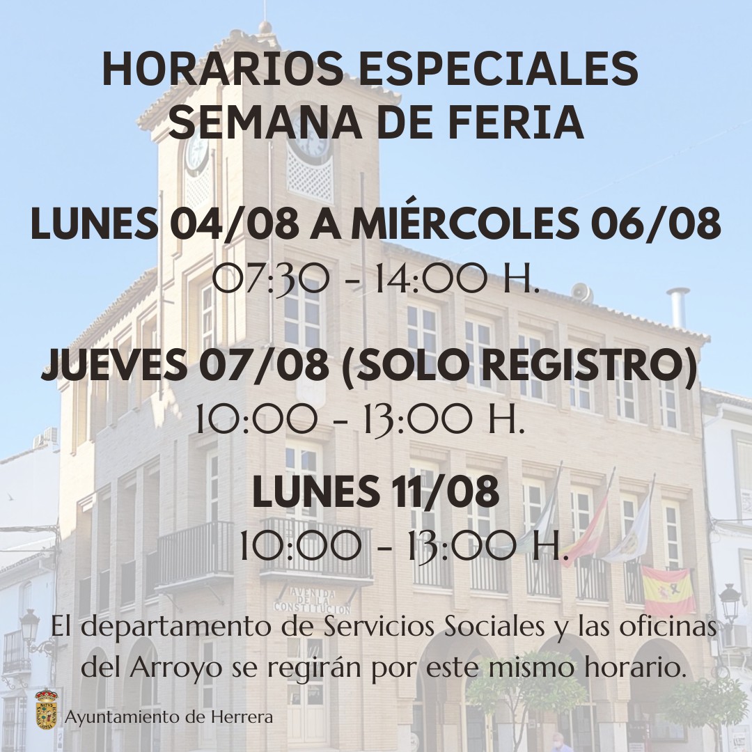 Horarios de las dependencias e instalaciones municipales durante la semana de Feria (04/08-11/08).