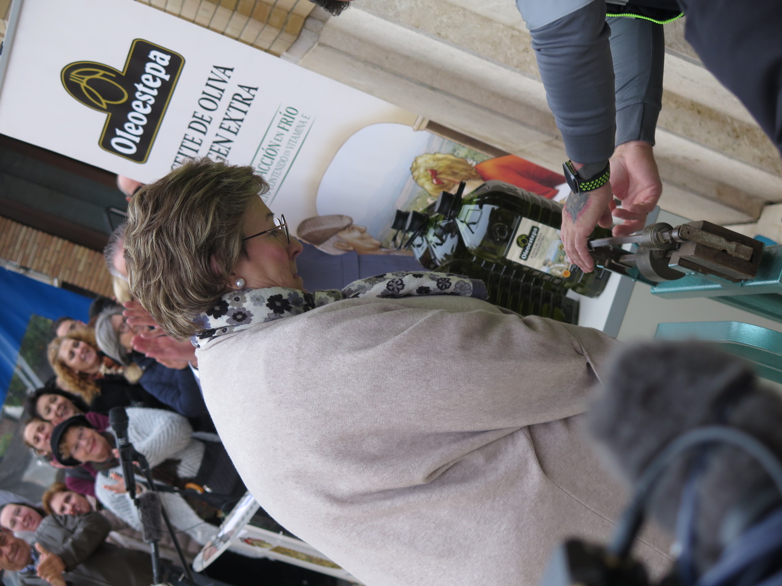 Cuando el presentador del acto ha nombrado a la ganadora, Remedios ha salido del ayuntamiento recibiendo una fuerte ovación por parte de los presentes. Además de medios de comunicación locales y nacionales, “nunca pensaba que esta campaña pudiera tener tanta repercusión” ha incidido el primer teniente de alcalde, Alejandro Suárez, por ello “destaco la excelente colaboración de las cooperativas que han donado el aceite, Agropecuaria Herrera, La Purísma y Oleoestepa. Y como no puede ser de otra manera, a la asociación de empresas y comerciantes, (ASECOHE), ha comentado el edil. Resalto igualmente la labor realizada por nuestro gabinete de comunicación, del personal se servicios. Además agradece a Nicolás Pineda (Frutas Pineda) “que nos haya prestado la báscula para este pesaje”.